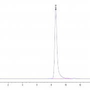 The protein has a predicted MW of 39.5 kDa. Due to glycosylation, the protein migrates to 46-50 kDa based on Tris-Bis PAGE result.