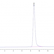 The protein has a predicted MW of 24.91 kDa. Due to glycosylation, the protein migrates to 38-48 kDa based on Tris-Bis PAGE result.