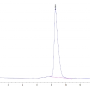 The protein has a predicted MW of 28 kDa. Due to glycosylation, the protein migrates to 50-60 kDa based on Tris-Bis PAGE result.
