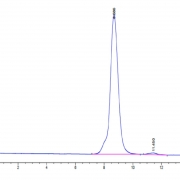The protein has a predicted MW of 50.01 kDa. Due to glycosylation, the protein migrates to 70-120 kDa based on Tris-Bis PAGE result.