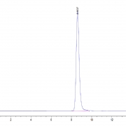 The protein has a predicted MW of 50 kDa. Due to glycosylation, the protein migrates to 65-70 kDa based on Tris-Bis PAGE result.
