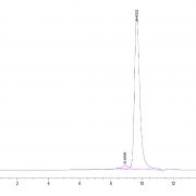 The protein has a predicted MW of 49.87 kDa. Due to glycosylation, the protein migrates to 52-68 kDa based on Tris-Bis PAGE result.