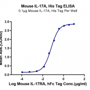 Immobilized Mouse IL-17A, His Tag at 1ug/ml (100ul/well) on the plate. Dose response curve for Mouse IL-17RA, hFc Tag with the EC50 of 64.9ng/ml determined by ELISA. See testing image for detail.