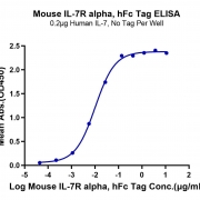 Immobilized Human IL-7, No Tag at 2ug/ml (100ul/well) on the plate. Dose response curve for Mouse IL-7R alpha, hFc Tag with the EC50 of 10.2ng/ml determined by ELISA. See testing image for detail.