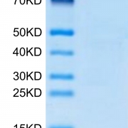 The protein has a predicted MW of 125.80 kDa (ITGA10) & 82.80 kDa (ITGB1). Due to glycosylation, the protein migrates to 140-170 kDa (ITGA10) & 100-130 kDa (ITGB1) based on Tris-Bis PAGE result.