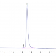 The protein has a predicted MW of 131.48 kDa(ITGAV)&80.80 kDa(ITGB3). Due to enzyme lysis and glycosylation, the protein migrates to 90-130 kDa based on Tris-Bis PAGE result.