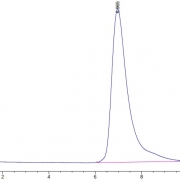 The protein has a predicted MW of 75.7 kDa. Due to glycosylation, the protein migrates to 80-115 kDa based on Tris-Bis PAGE result.