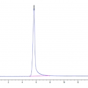 The protein has a predicted MW of 42.76 kDa. Due to glycosylation, the protein migrates to 45-50 kDa based on Tris-Bis PAGE result.