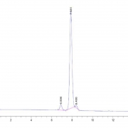 The protein has a predicted MW of 84.7 kDa. Due to glycosylation, the protein migrates to 85-110 kDa based on Tris-Bis PAGE result.