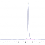 The protein has a predicted MW of 46.88 kDa. Due to glycosylation, the protein migrates to 55-62 kDa based on Tris-Bis PAGE result.