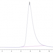 The protein has a predicted MW of 35.2 kDa. Due to glycosylation, the protein migrates to 45-60 kDa based on Tris-Bis PAGE result.