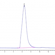 The protein has a predicted MW of 60.9 kDa. Due to glycosylation, the protein migrates to 75-95 kDa based on Tris-Bis PAGE result.