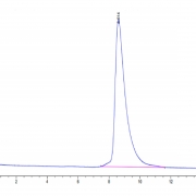 The protein has a predicted MW of 37.11 kDa. Due to glycosylation, the protein migrates to 42-52 kDa based on Tris-Bis PAGE result.