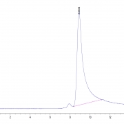 The protein has a predicted MW of 17.5 kDa. Due to glycosylation, the protein migrates to 24-35kDa based on Tris-Bis PAGE result.