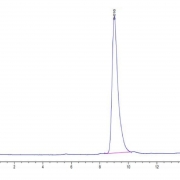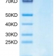 The protein has a predicted MW of 42.91 kDa. Due to glycosylation, the protein migrates to 50-60 kDa based on Tris-Bis PAGE result.