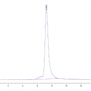 The protein has a predicted MW of 88.7 kDa. Due to glycosylation, the protein migrates to 90-95 kDa based on Tris-Bis PAGE result.