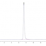 The protein has a predicted MW of 134.90 kDa. Due to glycosylation, the protein migrates to 140-160 kDa based on Tris-Bis PAGE result.
