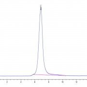 The protein has a predicted MW of 51.7 kDa. Due to glycosylation, the protein migrates to 80-110 kDa based on Tris-Bis PAGE result.