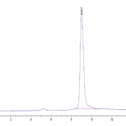 The protein has a predicted MW of 9.8 kDa. Due to glycosylation, the protein migrates to 20-30 kDa based on Tris-Bis PAGE result.