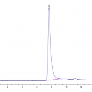 The protein has a predicted MW of 42.6 kDa. Due to glycosylation, the protein migrates to 49-52 kDa based on Tris-Bis PAGE result.