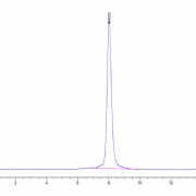 The protein has a predicted MW of 43.28 kDa. Due to glycosylation, the protein migrates to 58-68 kDa based on Tris-Bis PAGE result.