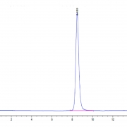 The protein has a predicted MW of 52.9 kDa. Due to glycosylation, the protein migrates to 60-70 kDa based on Tris-Bis PAGE result.