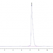 The protein has a predicted MW of 25.3 kDa. Due to glycosylation, the protein migrates to 48-55 kDa based on Tris-Bis PAGE result.