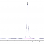 The protein has a predicted MW of 33.6 kDa. Due to glycosylation, the protein migrates to 40-50 kDa based on Tris-Bis PAGE result.