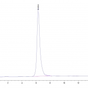 The protein has a predicted MW of 51 kDa. Due to glycosylation, the protein migrates to 85-110 kDa based on Tris-Bis PAGE result.