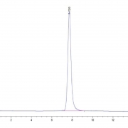 The protein has a predicted MW of 49.01 kDa. Due to glycosylation, the protein migrates to 75-100 kDa based on Tris-Bis PAGE result.