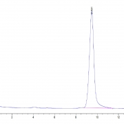 The protein has a predicted MW of 34 kDa. Due to glycosylation, the protein migrates to 38-42 kDa based on Tris-Bis PAGE result.