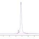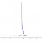 The protein has a predicted MW of 47.0 kDa. Due to glycosylation, the protein migrates to 57-67 kDa based on Tris-Bis PAGE result.