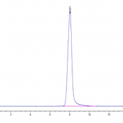 The protein has a predicted MW of 72.24 kDa. Due to glycosylation, the protein migrates to 75-105 kDa based on Tris-Bis PAGE result.