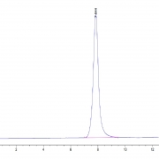 The protein has a predicted MW of 50 kDa. Due to glycosylation, the protein migrates to 60-70 kDa based on Tris-Bis PAGE result.