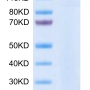The protein has a predicted MW of 258 kDa. Due to glycosylation, the protein migrates to 260-265 kDa under Non reducing (N) condition based on Tris-Bis PAGE result.