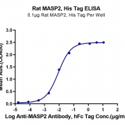 Immobilized Rat MASP2, His Tag at 1ug/ml (100ul/well) on the plate. Dose response curve for Anti-MASP2 Antibody, hFc Tag with the EC50 of 8.9ng/ml determined by ELISA. See testing image for detail.