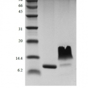 We recommend that this vial be briefly centrifuged prior to opening to bring the contents to the bottom. Reconstitute in sterile distilled water or aqueous buffer containing 0.1 % BSA to a concentration of 0.1-1.0 mg/mL. Stock solutions should be apportioned into working aliquots and stored at ≤ -20 °C. Further dilutions should be made in appropriate buffered solutions.