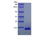 We recommend that this vial be briefly centrifuged prior to opening to bring the contents to the bottom. Reconstitute in sterile distilled water or aqueous buffer containing 0.1 % BSA to a concentration of 0.1-1.0 mg/mL. Stock solutions should be apportioned into working aliquots and stored at ≤ -20 °C. Further dilutions should be made in appropriate buffered solutions.