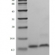 Epigen is a member of the epidermal growth factor family and is expressed by several tissues, including the testis, liver, heart and in certain tumor cells. It is strongly mitogenic for fibroblasts and epithelial cells, despite its relatively weak affinity for its main receptor, ErbB1. The mitogenic potential of Epigen is enhanced by its unusually long persistence on the membrane before ubiquitylation and receptor-mediated depletion. The gene of human Epigen encodes a 154 amino acid (a.a.) residue type I transmembrane precursor glycoprotein which contains a 22 a.a. signal peptide, an 88 a.a. extracellular domain, a 21 a.a. transmembrane domain and a 23 a.a. cytoplasmic domain. By alternative splicing of the gene, Epigen has several isoforms. The mature, shed form of human Epigen (54 – 104a.a.) shares 92 %, 94 % and 94 % a.a. sequence identity with mouse, rat and equine Epigen, respectively.