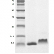 We recommend that this vial be briefly centrifuged prior to opening to bring the contents to the bottom. Reconstitute in sterile distilled water or aqueous buffer containing 0.1 % BSA to a concentration of 0.1-1.0 mg/mL. Stock solutions should be apportioned into working aliquots and stored at ≤ -20°C. Further dilutions should be made in appropriate buffered solutions.