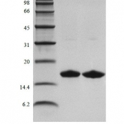 Approximately 16.9 kDa, a single non-glycosylated polypeptide chain containing 144 amino acids.