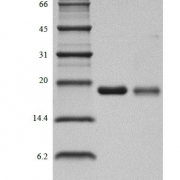 Interleukin-36 (IL-36) is a pro-inflammatory cytokine which plays an important role in the pathophysiology of several diseases. IL-36alpha, IL-36β, and IL-36gamma (formerly IL-1F6, IL-1F8, and IL-1F9) are IL-1 family members that signal through the IL-1 receptor family members IL-1Rrp2 (IL-1RL2) and IL-1RAcP. IL-36gamma is secreted when transfected into 293-T cells and it could constitute part of an independent signaling system analogous to interleukin-1 alpha (IL-1A), beta (IL-1B) receptor agonist and interleukin-1 receptor type I (IL-1R1). Furthermore, IL-36gamma also can function as an agonist of NF-kappa B activation through the orphan IL-1-receptor-related protein 2. Recombinant human IL-36gamma is synthesized as a 19 kDa, 169 amino acid (a.a.) protein that contains no signal sequence, no prosegment and no potential N-linked glycosylation site. Human to mouse, IL-36gamma shares 53 % a.a. identity. Within the family, IL-36gamma shares about 25 % ~ 55 % a.a. sequence identity with IL-1RA, IL-1β, IL-36RA, IL-36alpha, IL-37, IL-36β and IL-1F10.
