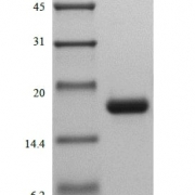 Macrophage Colony Stimulating Factor (M-CSF), also named CSF-1, is a hematopoietic growth factor that is involved in the proliferation, differentiation, and survival of monocytes, macrophages, and bone marrow progenitor cells. It is produced by osteoblasts (as a result of endocrine stimulation by parathyroid hormone) exerts paracrine effects on osteoclasts and can interact with CSF1R. M-CSF is a four alpha-helical bundle cytokine and its active form is found extracellularly as a disulfide-linked homodimer. Four transcript variants encoding three different isoforms have been reported for M-CSF gene. Although forms may vary, all of them contain the N-terminal 150 a.a. portion that is necessary and sufficient for interaction with the receptor. The first 223 a.a. of mature human M-CSF shares 88 %, 86 %, 81 % and 74 % sequence identity with corresponding regions of dog, cow, mouse and rat M-CSF, respectively. Human M-CSF is active in the mouse, but mouse M-CSF is reported to be species-specific.