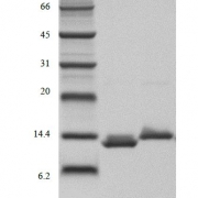 Approximately 13.5 kDa, a single non-glycosylated polypeptide chain containing 117 amino acids, with 6 × His at the C-terminus.