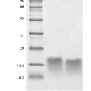 We recommend that this vial be briefly centrifuged prior to opening to bring the contents to the bottom. Reconstitute in sterile distilled water or aqueous buffer containing 0.1 % BSA to a concentration of 0.1-1.0 mg/mL. Stock solutions should be apportioned into working aliquots and stored at ≤ -20°C. Further dilutions should be made in appropriate buffered solutions.