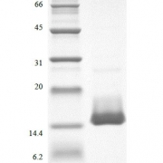 We recommend that this vial be briefly centrifuged prior to opening to bring the contents to the bottom. Reconstitute in sterile distilled water or aqueous buffer containing 0.1 % BSA to a concentration of 0.1-1.0 mg/mL. Stock solutions should be apportioned into working aliquots and stored at ≤ -20 °C. Further dilutions should be made in appropriate buffered solutions.