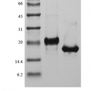 Approximately 17.6 kDa, a single non-glycosylated polypeptide chain containing 157 amino acids.