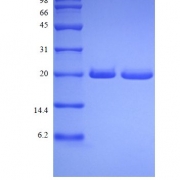 Approximately 13.9 kDa, a single non-glycosylated polypeptide chain containing 127 amino acids. But it migrates with an apparent molecular mass of 22 kDa in SDS-PAGE.