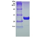 Approximately 23.4 kDa, a single non-glycosylated polypeptide chain containing 200 amino acids (a.a.) of human UBE2K and 8 a.a. vector sequence including 6 × His tag at N-terminus.