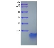 We recommend that this vial be briefly centrifuged prior to opening to bring the contents to the bottom. Reconstitute in sterile distilled water or aqueous buffer containing 0.1 % BSA to a concentration of 0.1-1.0 mg/mL. Stock solutions should be apportioned into working aliquots and stored at ≤ -20 °C. Further dilutions should be made in appropriate buffered solutions.
